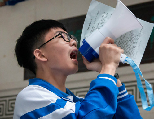 “学长学姐加油!高考必胜!青春无悔……”,上午,长沙市实验中学校园里此起彼伏的加油助威声突破了校园的宁静。一年一度的校园“喊楼”活动开端了。